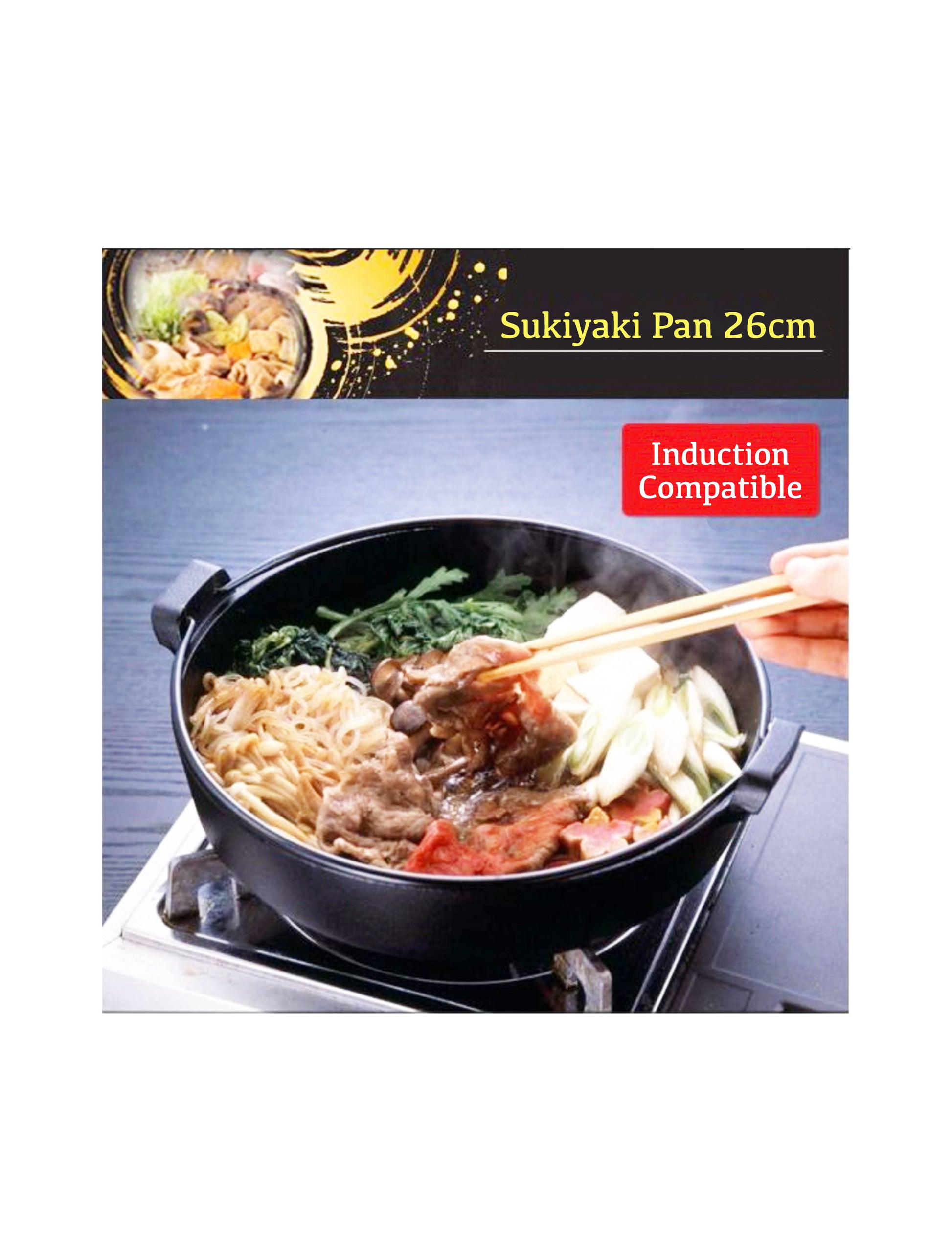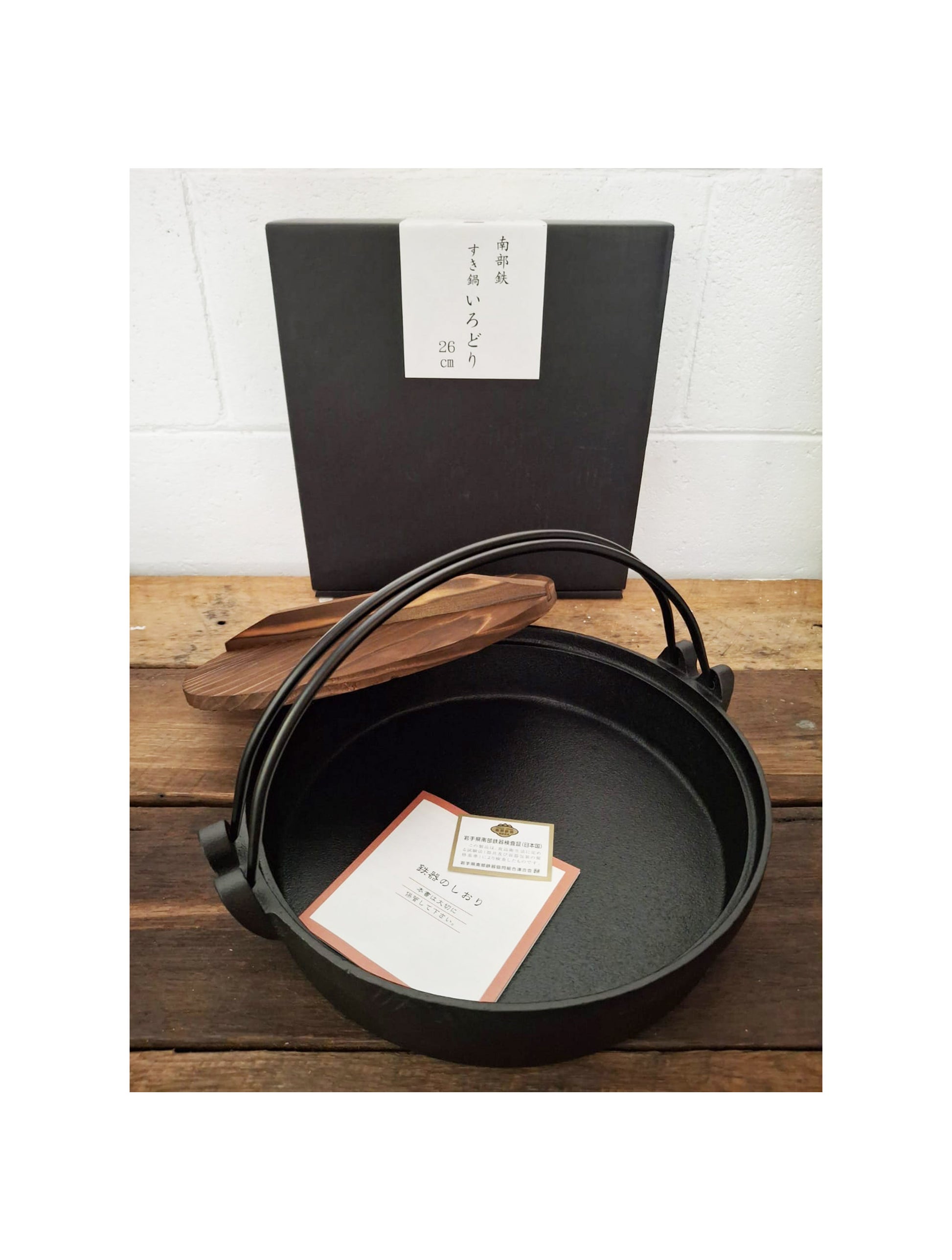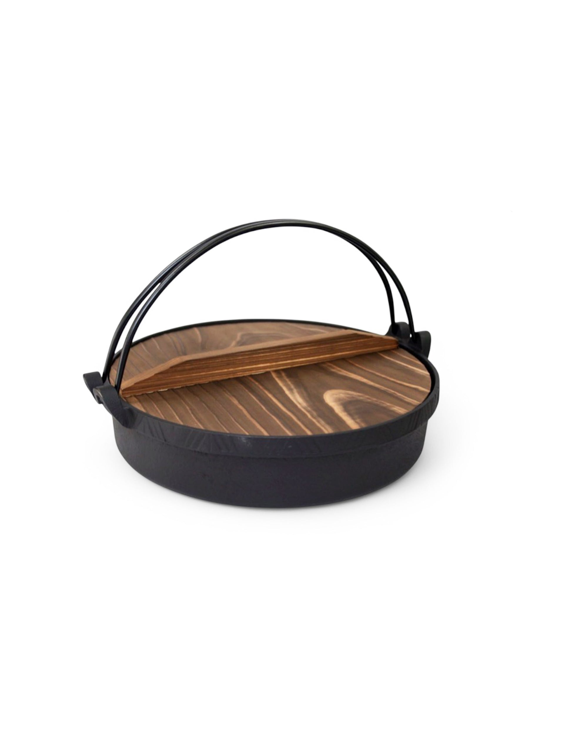 Japanese Cast Iron Sukiyaki Pot Pan with Wooden Lid 26cm | WISTOS