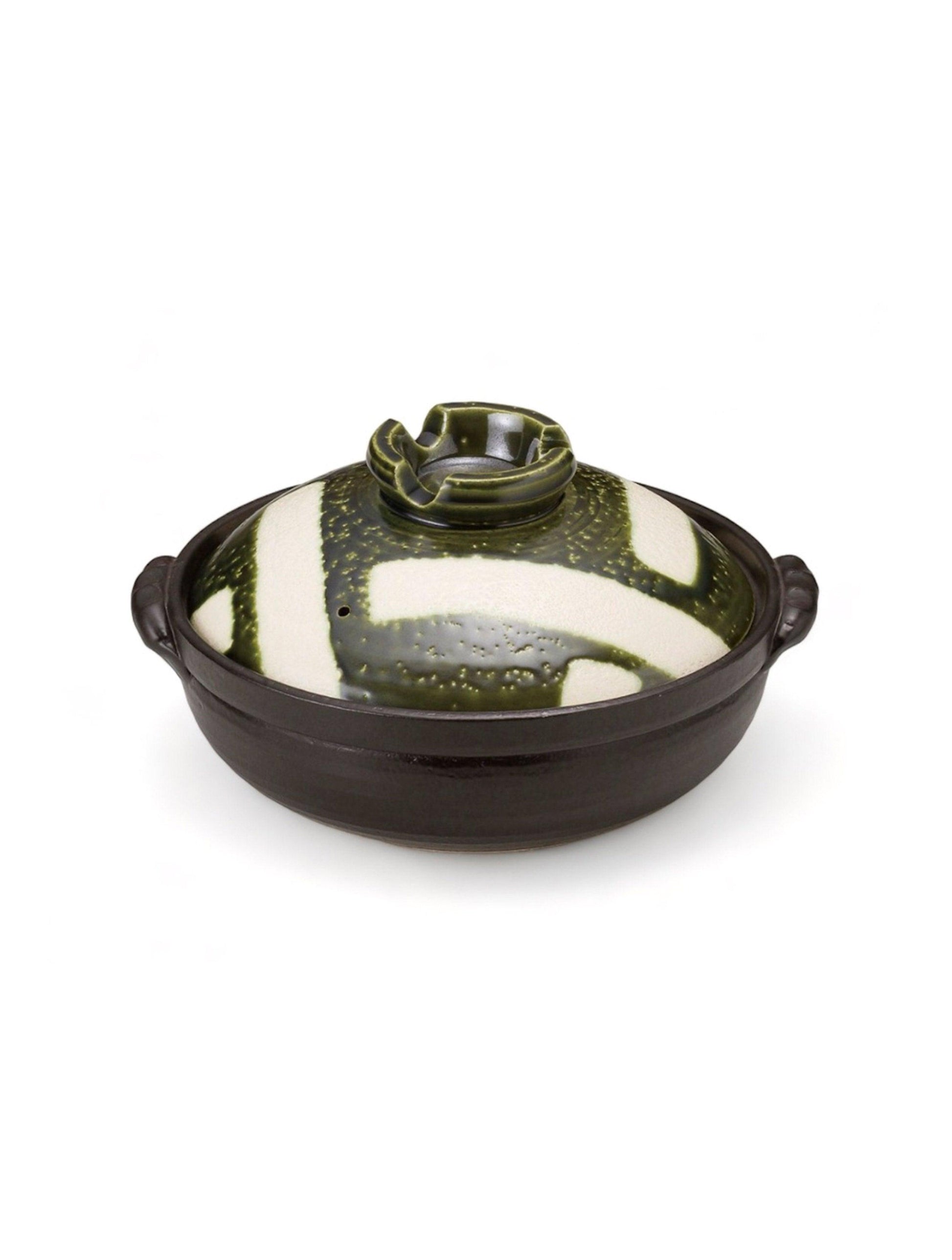 Oribe Koushi 陶土锅是一款美观实用的日本产陶土锅。有三种颜色:黑色、绿色和白色。它适用于燃气灶和电磁炉,配有特殊盘子套装。它适用于烤箱,建议手洗。它配有礼品盒,是完美的礼物。