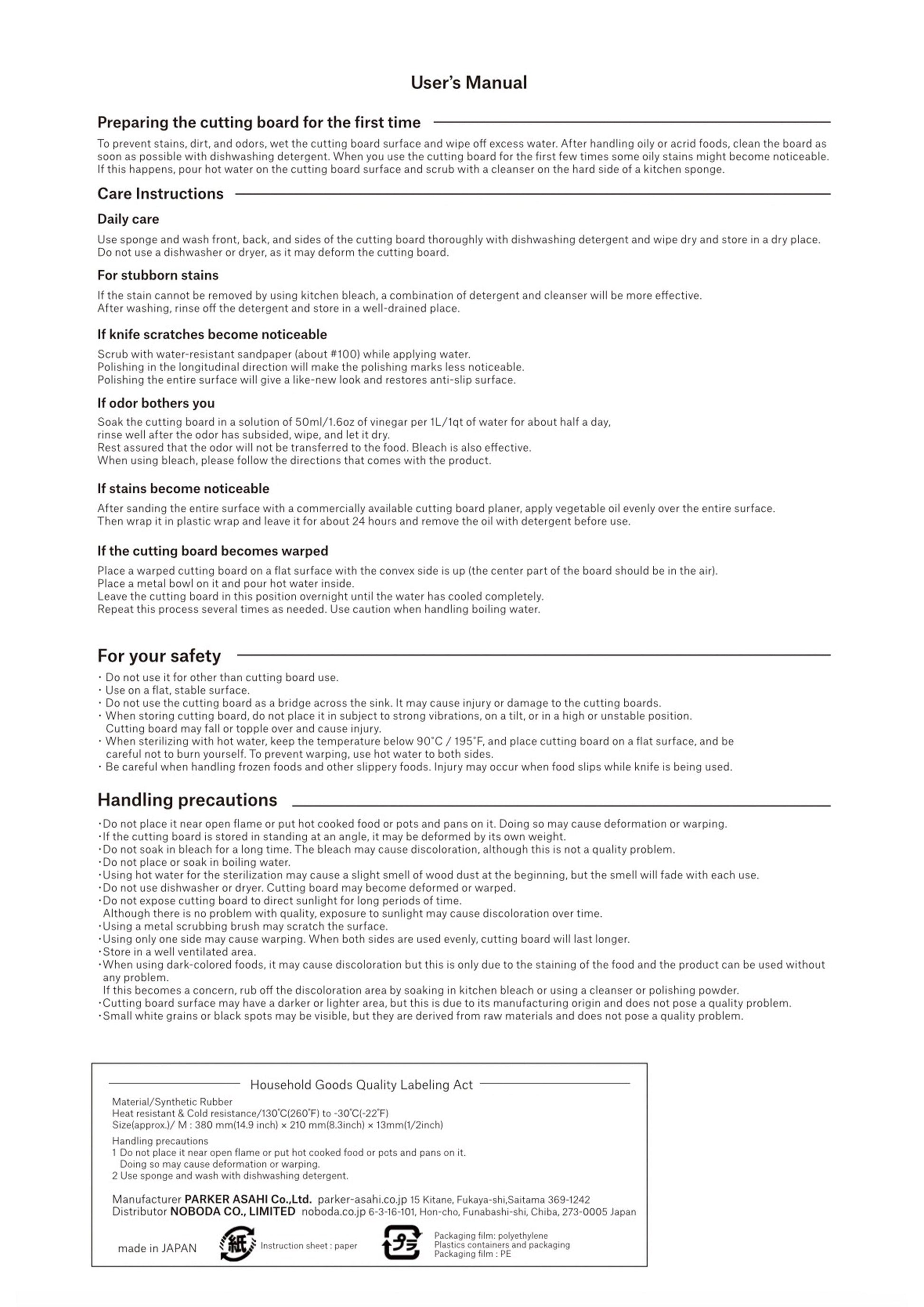Parker Asahi 合成橡胶切菜板 - 专业/商业级,黑色