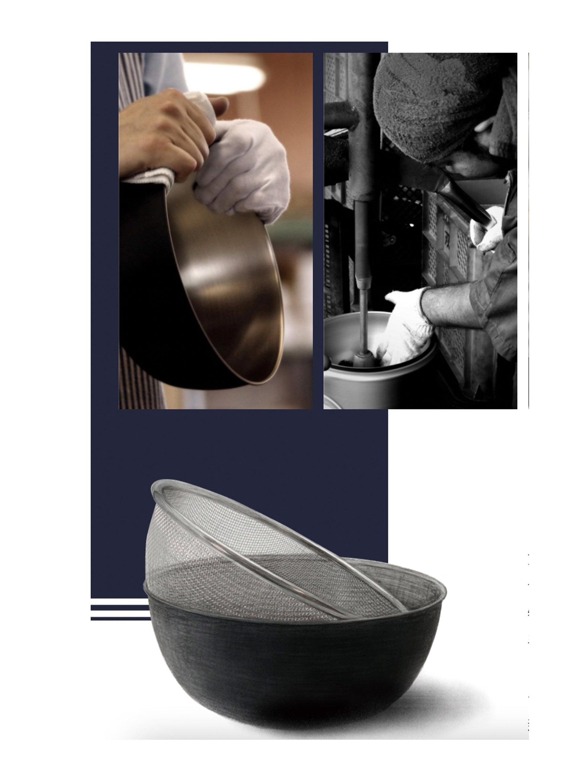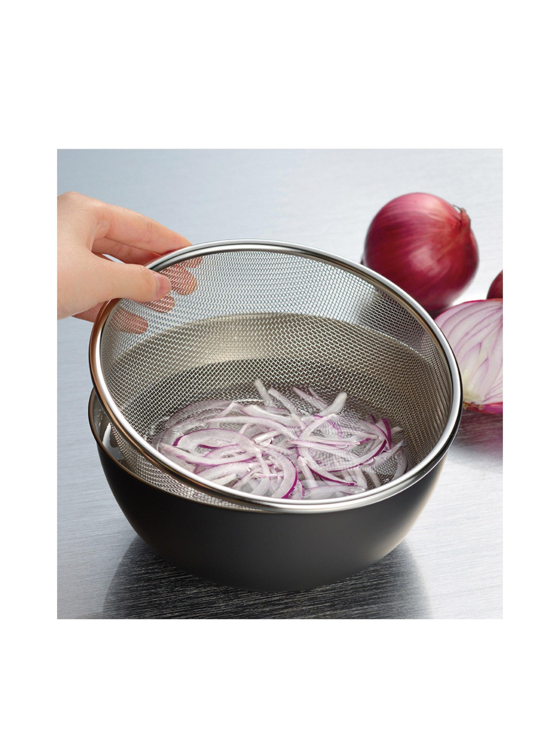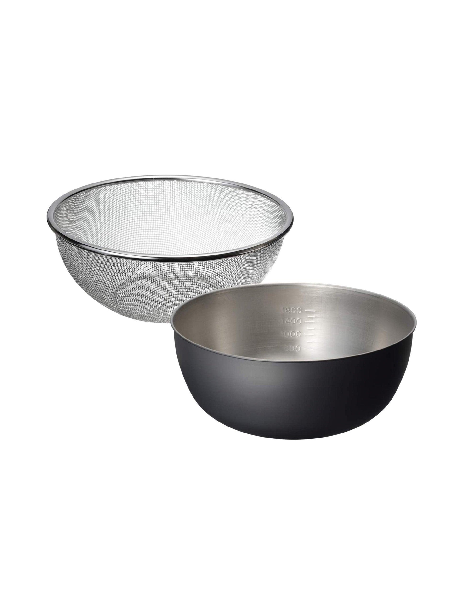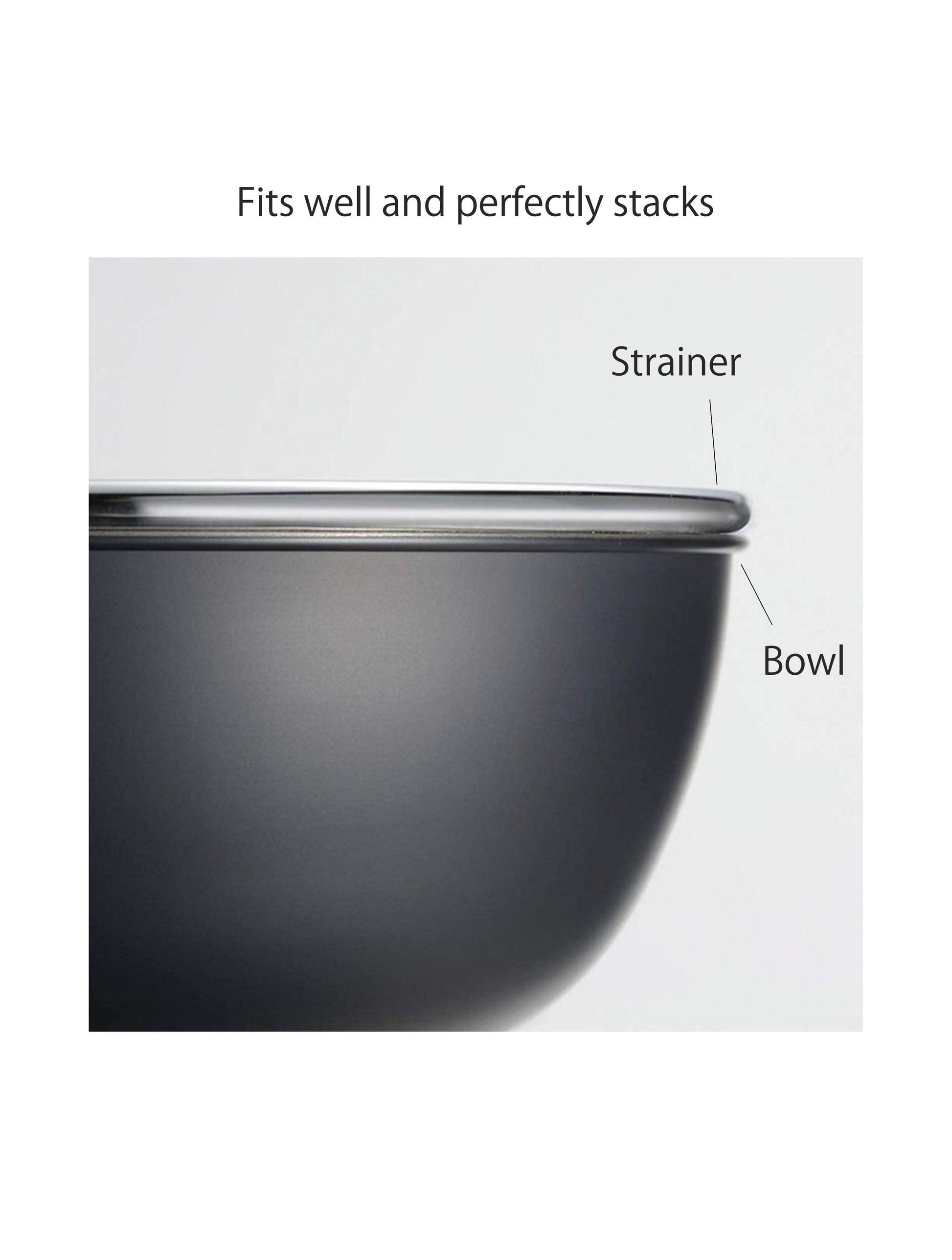 Okatte - 黑色烤漆不鏽鋼碗和細網過濾器套裝