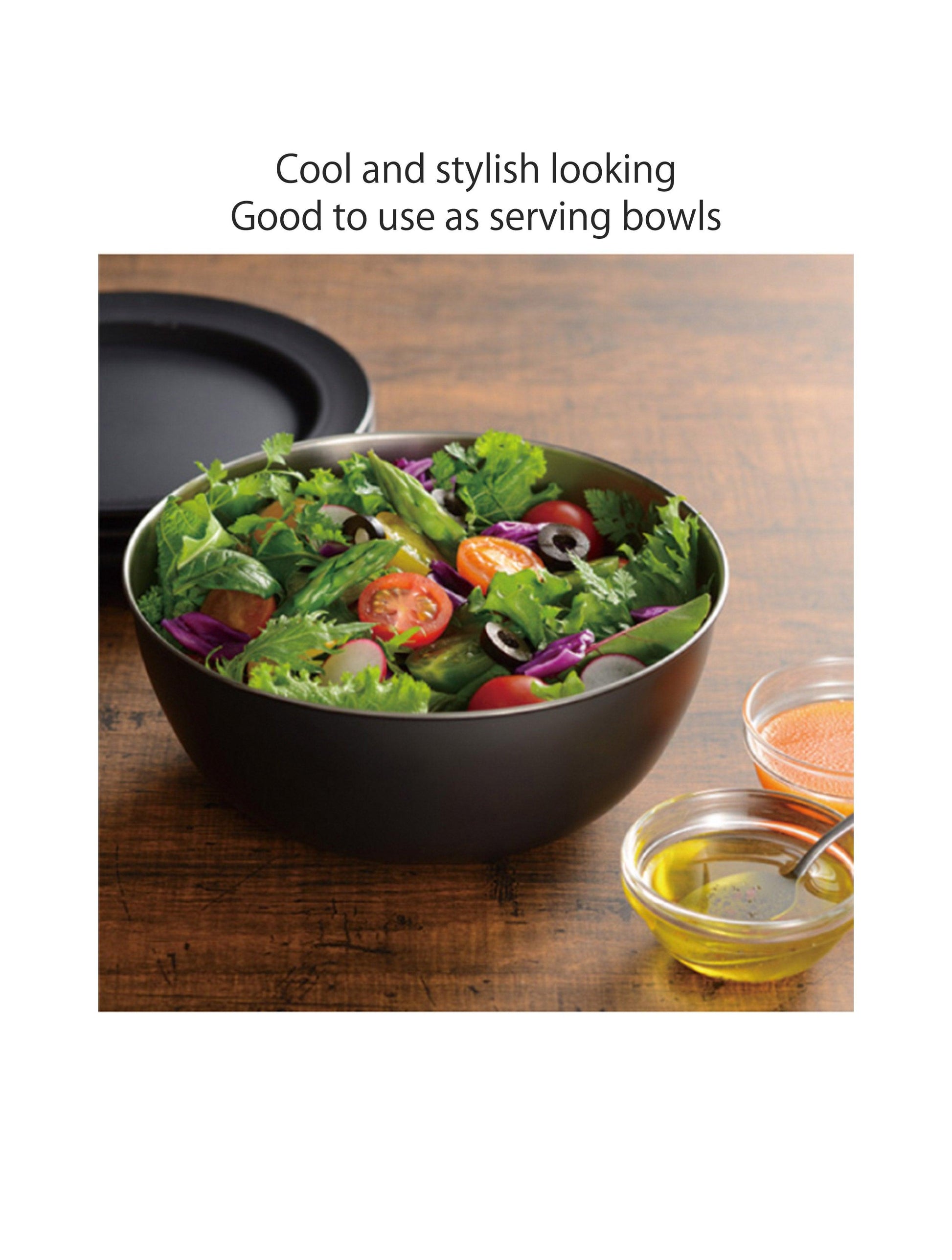 Okatte - 黑色烘焙不銹鋼碗和細網過濾器套裝 21 厘米