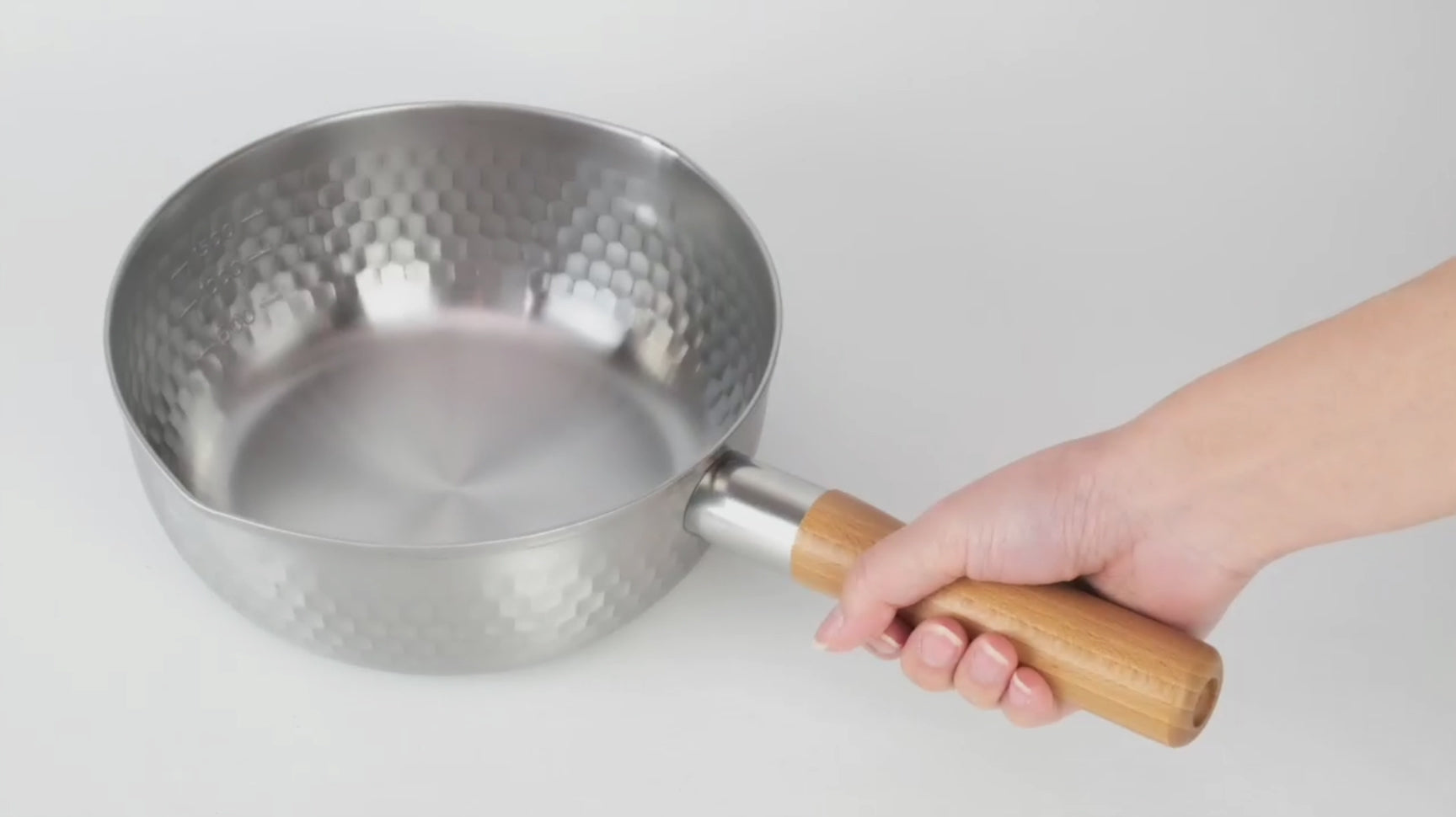 平底鍋內部有 400 毫升增量的標記。
