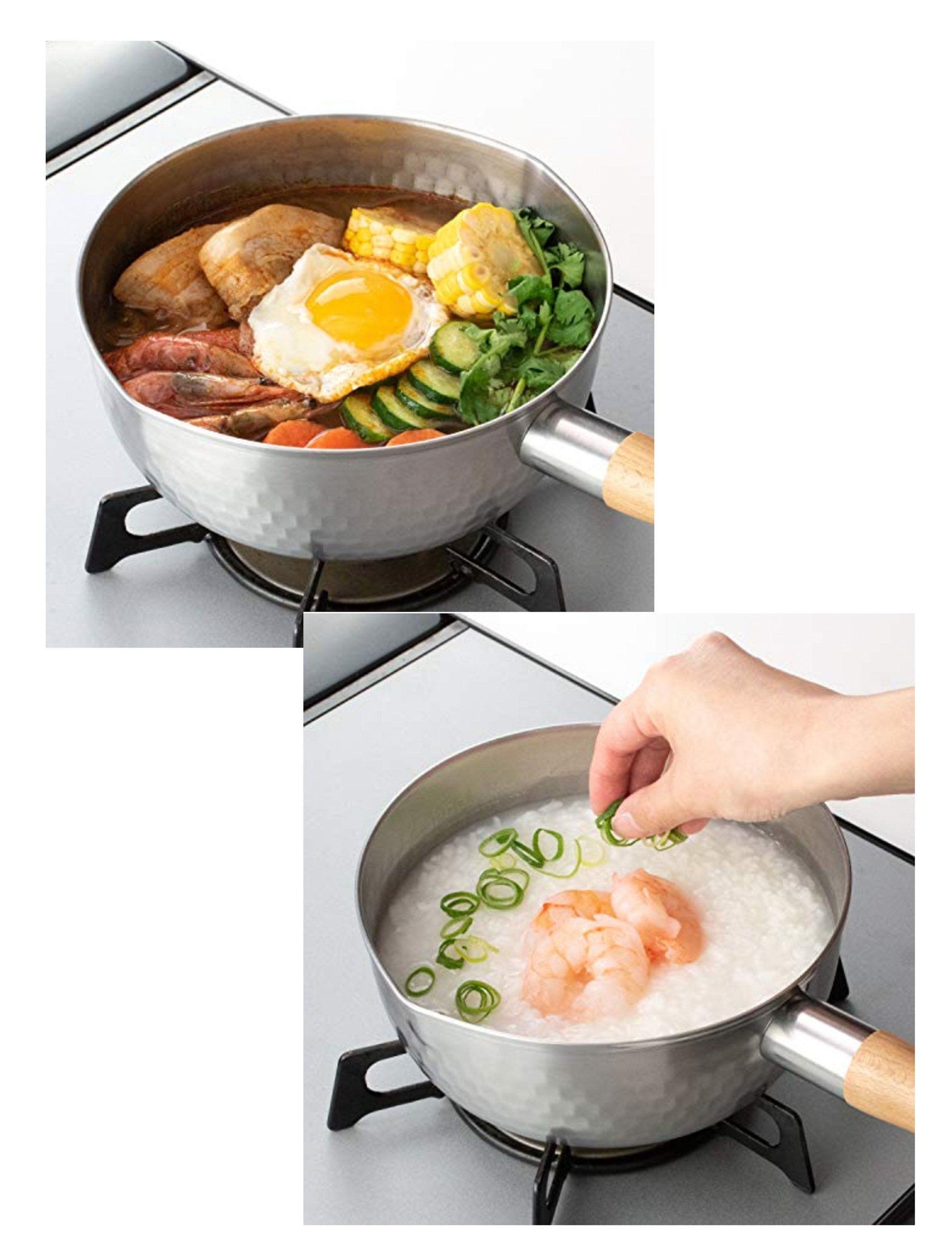 加熱後利用不銹鋼的保溫性製成,加熱後不易冷卻,也適合以文火煮食。